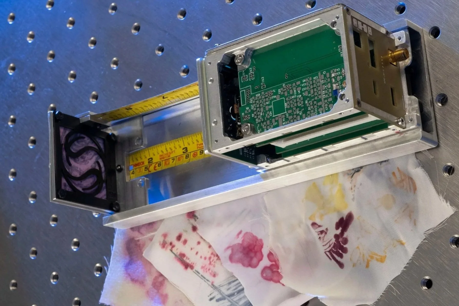 Examples of fabrics dyed with pigmented bacteria and the PocketQube